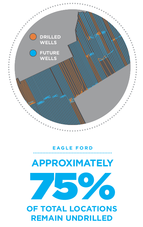 We have assembled a deep inventory of drilling locations situated in some of the best rock in North America. We have more than 2,200 net drilling locations in our inventory, with more than 1,200 of these located in the Eagle Ford Shale and more than 240 located in the Delaware Basin. In the Eagle Ford Shale alone, that equates to 10-15 years of inventory at our current drilling pace.