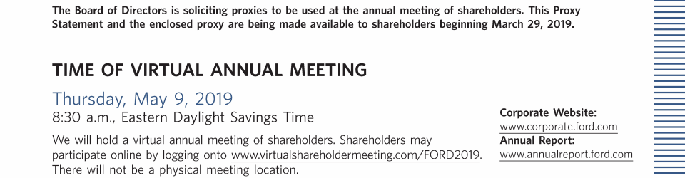 Click here to go to www.virtualshareholdermeeting.com/FORD2019 Click here to go to www.corporate.ford.com Click here to go to www.annualreport.ford.com Click here to go to www.virtualshareholdermeeting.com/FORD2019 Click here to go to www.corporate.ford.com Click here to go to www.annualreport.ford.com Click here to go to www.virtualshareholdermeeting.com/FORD2019 Click here to go to www.corporate.ford.com Click here to go to www.annualreport.ford.com Click here to go to www.virtualshareholdermeeting.com/FORD2019 Click here to go to www.corporate.ford.com Click here to go to www.annualreport.ford.com Click here to go to www.virtualshareholdermeeting.com/FORD2019 Click here to go to www.corporate.ford.com Click here to go to www.annualreport.ford.com