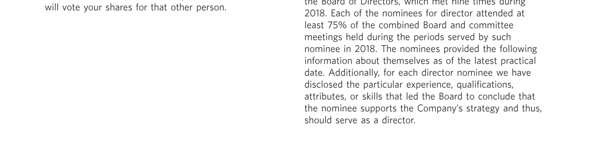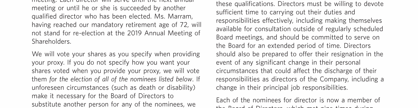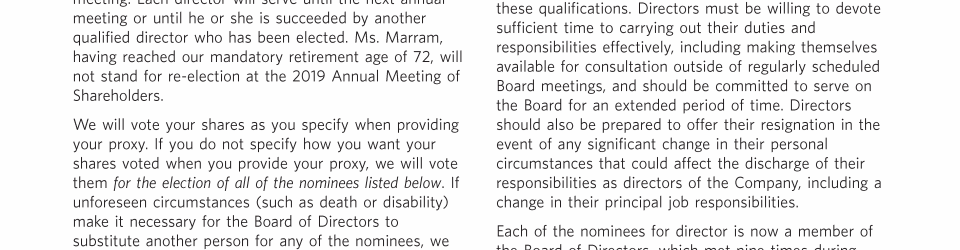 Review our director nominees' biographies, skills/qualifications, committees, and more in our interactive