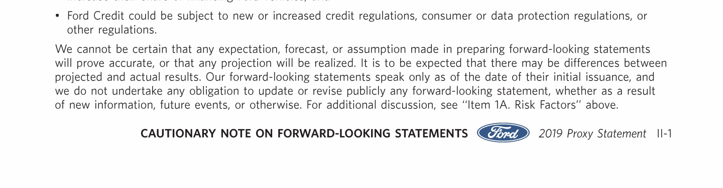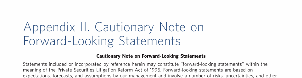 Appendix II. Cautionary Note on Forward Looking Statements